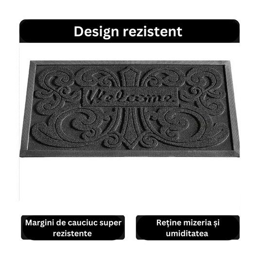 Covoras de intrare WELCOME, ®OPTIMDEKO, antiderapant, rezistent si decorativ, 75 x 43 cm, gri inchis