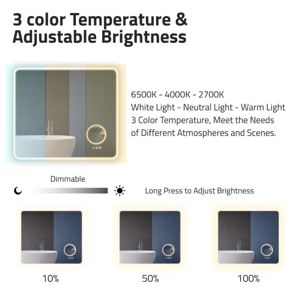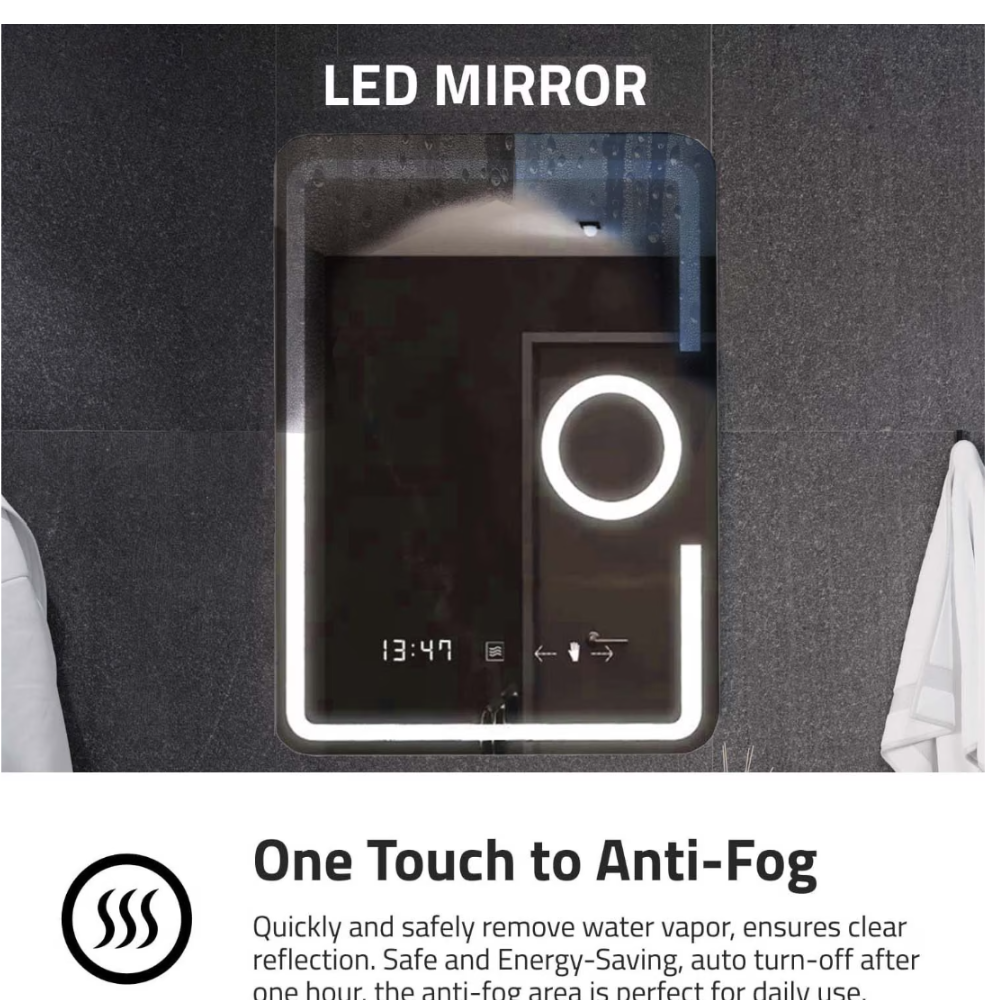 Datorita functiei TOUCH, oglinda se deosebeste simtitor fata de cele clasice. Folosind o atingere delicata asupra butonului aflat pe suprafata oglinzii, poti pune in functiune sau poti opri LED-urile de pe marginile sale. Totodata, tinand apasat butonul touch, ai posibilitatea si de a regla intensitatea luminii pe care LED-urile o emana. Folosind functia de dezaburire (ce se aseamana cu cea prevazuta pe majoritatea lunetelor automobilelor), vei avea parte de suficienta claritate chiar si in momentele in care densitatea aburului din camera este ridicata.