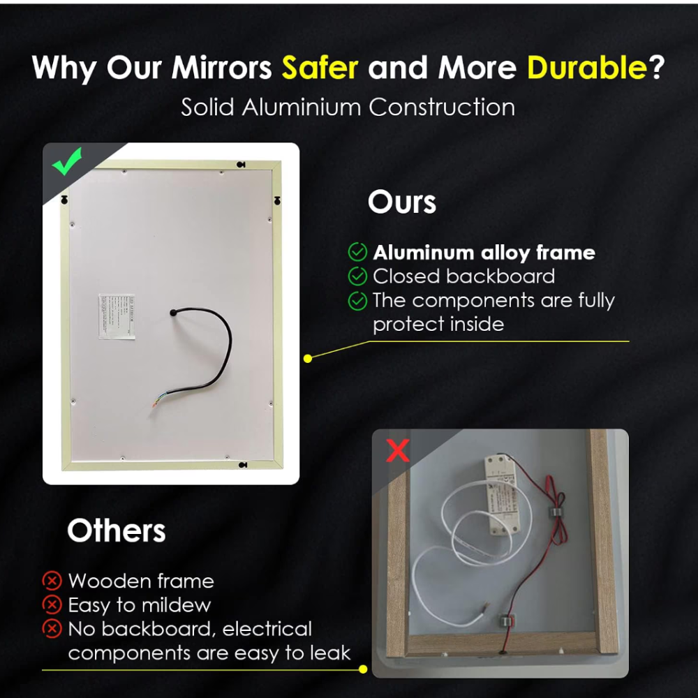 Oglinda dispune de un sistem format din LED-uri ce expun o lumina rece, clara, preferate de catre cunoscatorii acestui tip de tehnologie, preponderent folosita in cadrul corpurilor de iluminat actuale. LED-urile raspandesc o cantitate discreta de lumina, indeajuns de puternica pentru a ilumina zona din jurul oglinzii, fara a-ti obosi privirea.