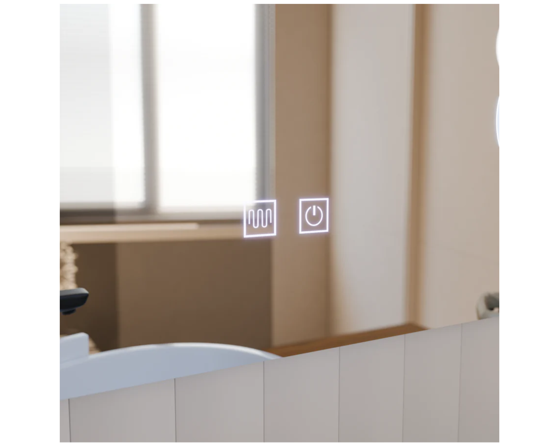 Control Tactil Eficient Funcția de control touch face reglarea iluminării și activarea funcției de dezaburire o experiență simplă și rapidă. Cu o singură atingere, poți elimina aburul după duș sau baie și obține o imagine clară, fără a pierde timp prețios.